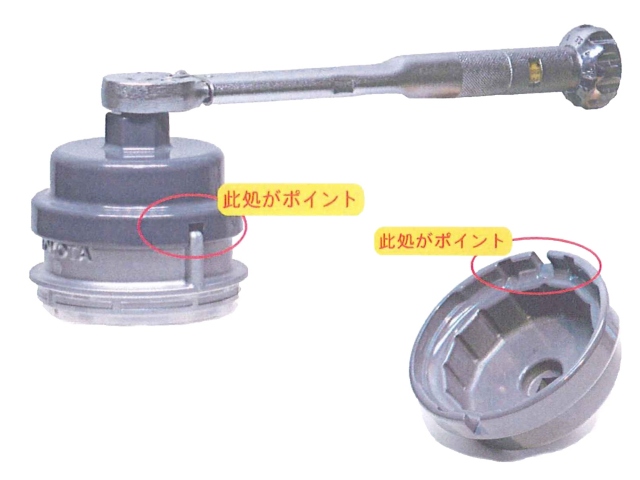 JTC4859 オイルフィルターレンチ 従来のカートリッジ式とフィルター交換式のどちらにも対応したTOYOTA&レクサス用オイルフィルターレンチです。 切り込みがあるためケースのウィングを押さえ、キャップの浮き上がりを防ぎます。 |