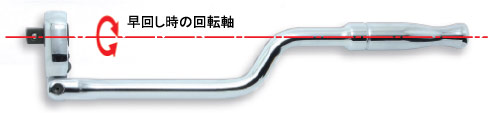 ![]() スピーダーラチェット 3/8sq :No.3774P-SR 首振り部を垂直に立てての早回し時に、ラチェット機構の中心に回転軸が来るようハンドルをクランク状に曲げた首振りラチェットハンドルです。 クランク部を持ってスピーダーハンドルのような早回し作業も可能です。 |